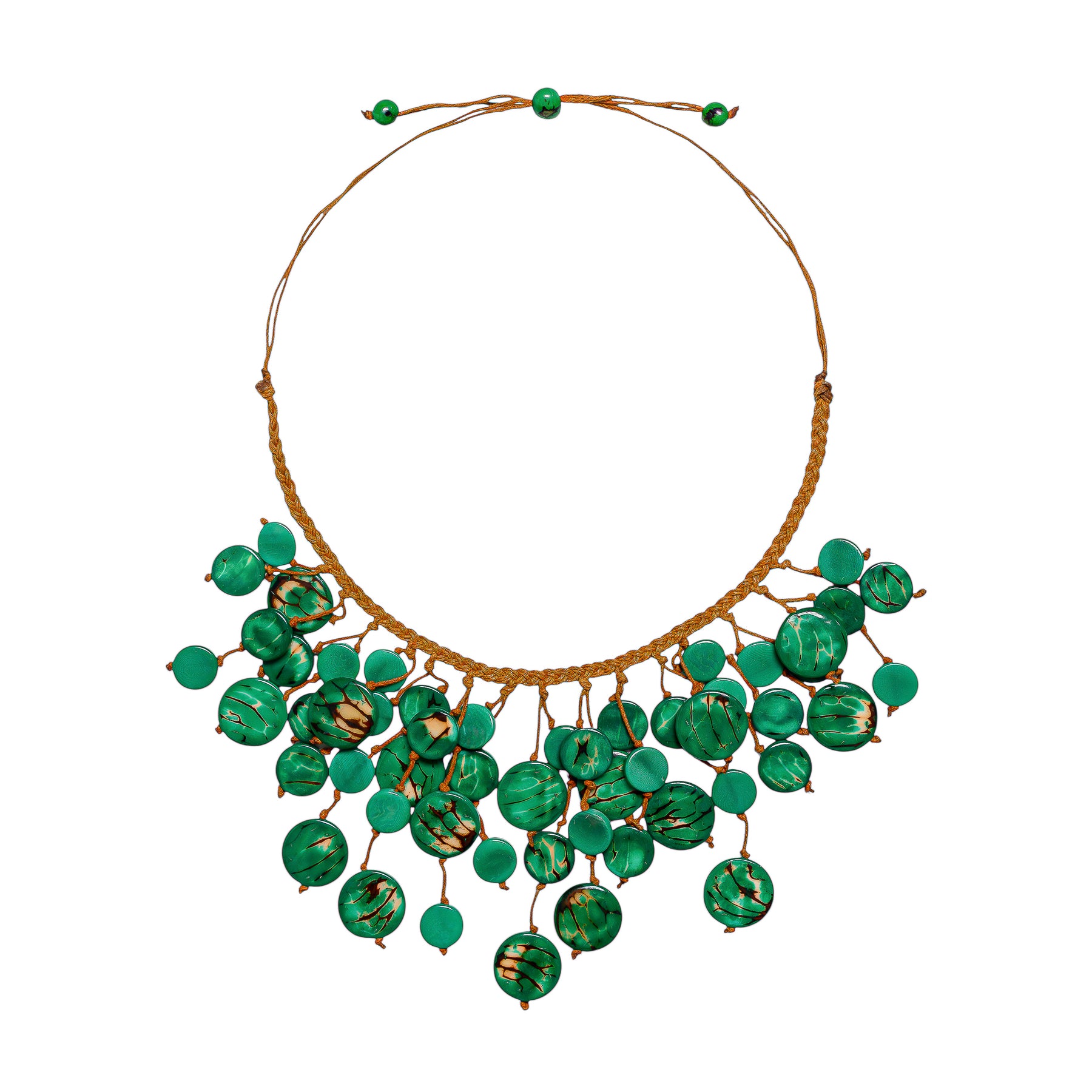 The Beth Necklace brings a refined, sculptural elegance to eco-friendly design, featuring smooth hand-carved tagua pieces arranged in a bold, flowing composition. Its striking silhouette and rich organic texture make it a standalone statement piece that effortlessly elevates any look with artisanal charm.
